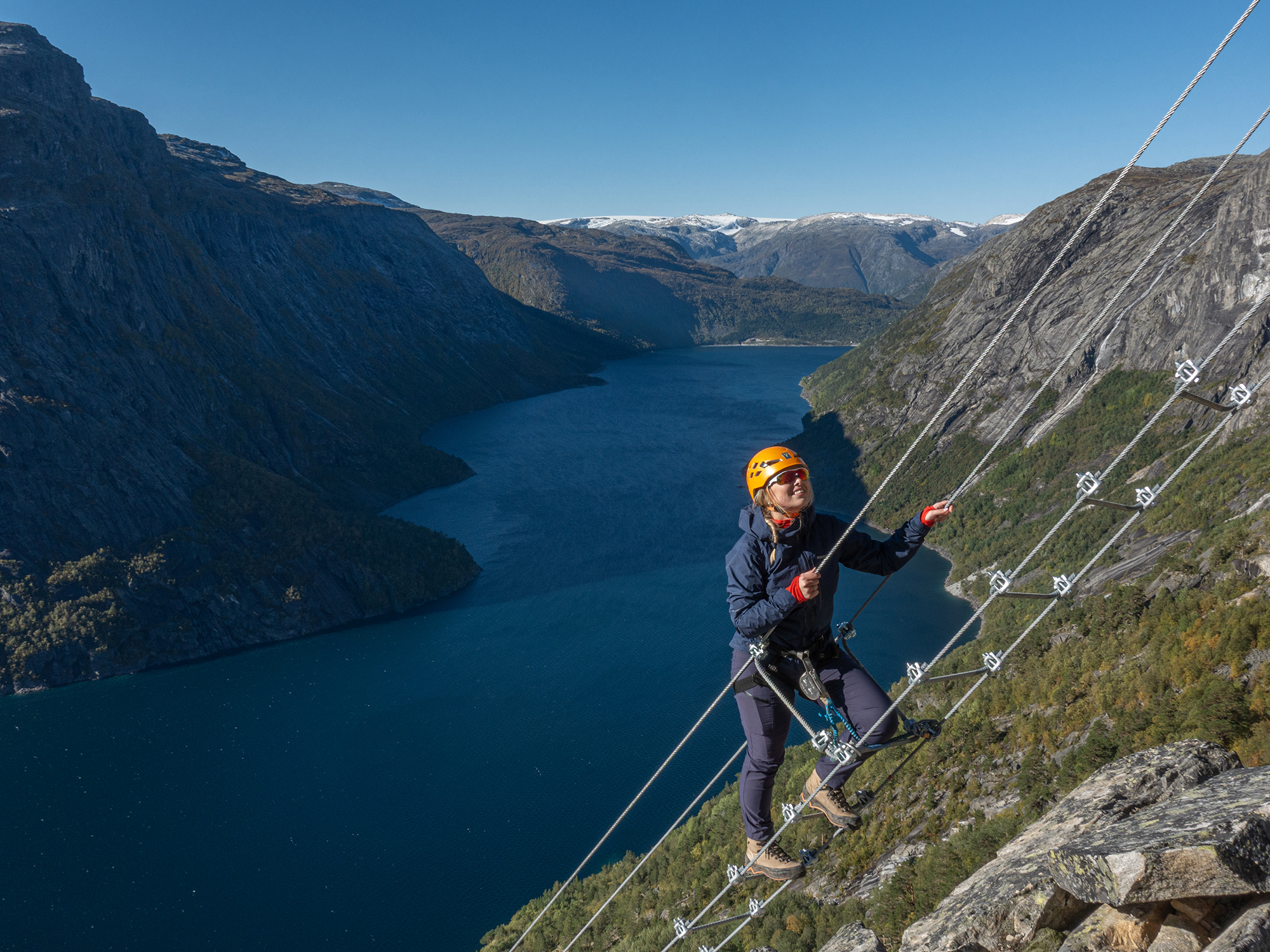 Trolltunga Via Ferrata with the Himmelstigen Sky Ladder, the most extraordinary way to immerse yourself in the breathtaking Norwegian mountains and the iconic Trolltunga rock formation. Prepare for an adventure filled with iron steps, the exhilarating Himmelstigen Sky Ladder, steep rock faces, and stunning views that will take your breath away.