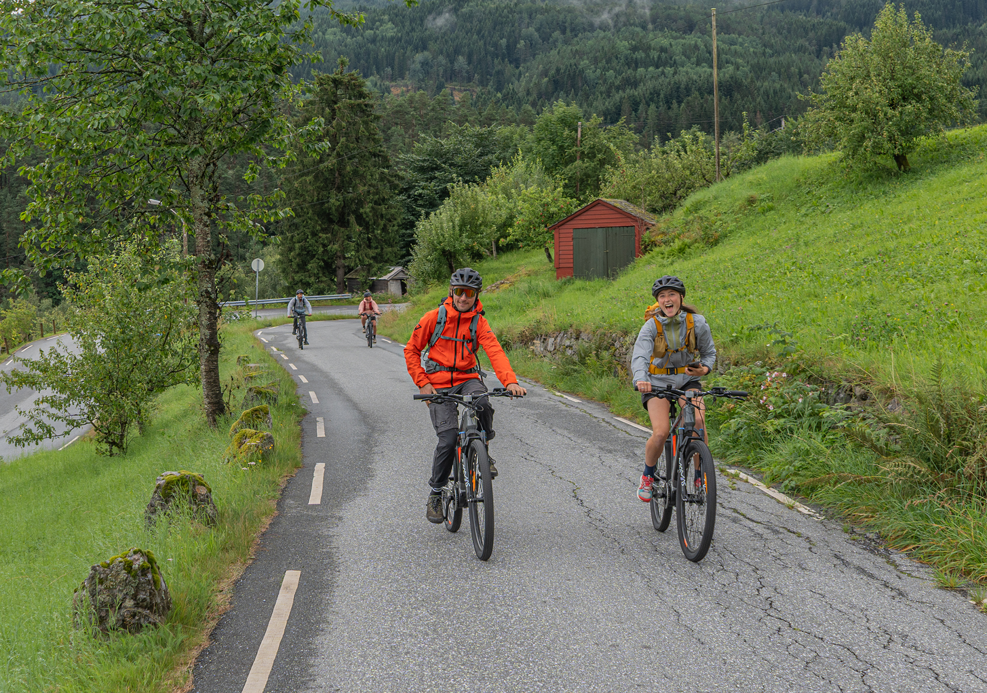 After our break, we’ll make our way back toward Ulvik, cycling downhill towards Ljono through a rich cultural farming landscape renowned for its apple orchards. Ulvik is notable for kickstarting the cider adventure in Hardanger around 2016, making it a hub for apple fruit farming and cider production. As we ride, you can admire the lush apple trees that have become a defining feature of the area.